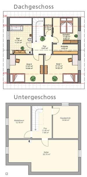 - Vollunterkellerung als druckwasserdichter Keller, mit 12 cm Perimeterdämmung