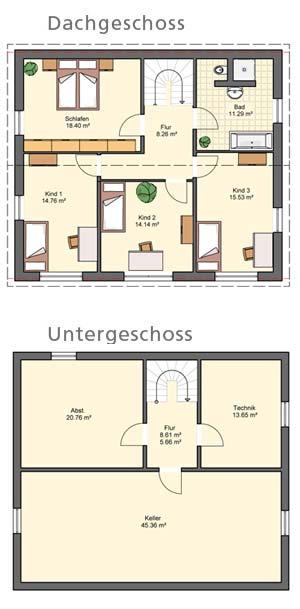 - Vollunterkellerung als druckwasserdichter Keller, mit 12 cm Perimeterdämmung